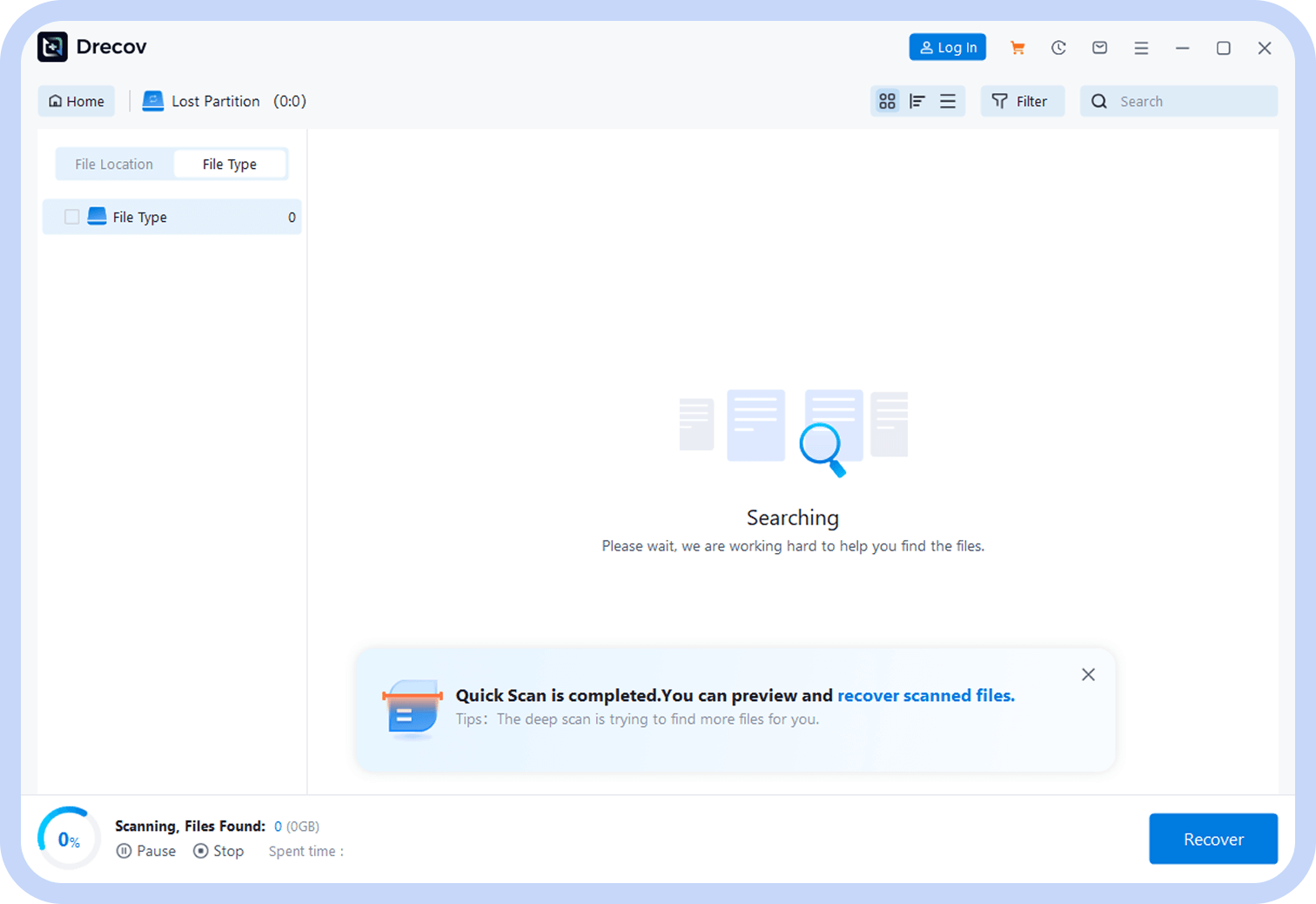 Full-range scan for lost data; no recoverable file goes unnoticed