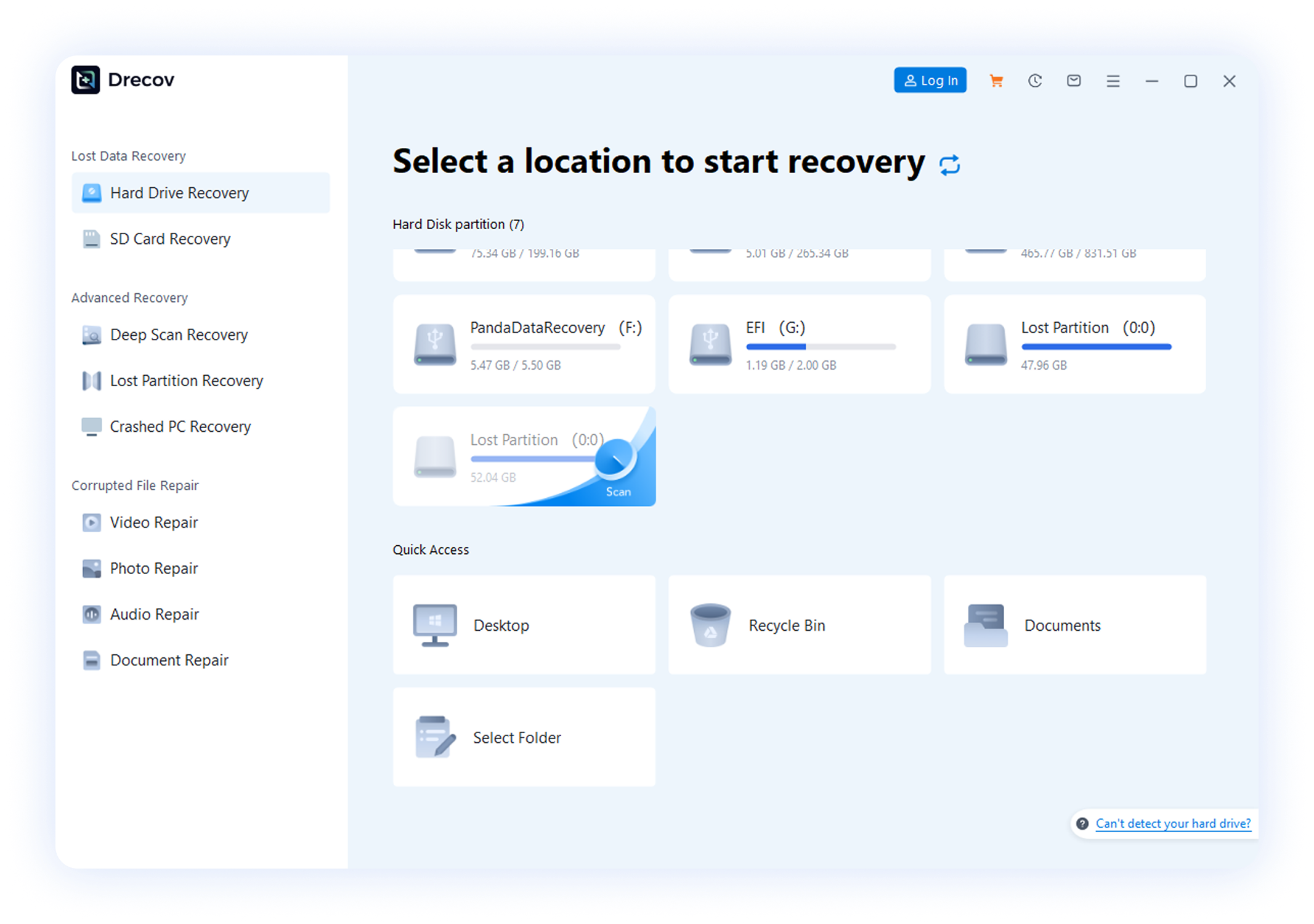 Plug in the affected drive, install PandaOffice Drecov, and choose the appropriate recovery mode (e.g., “Accidental Deletion,” “Format Recovery,” or “RAW Drive Recovery”).